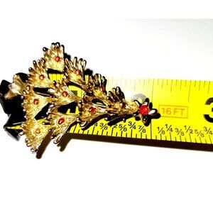 This delightful vintage brooch set by Gerry's captures the nostalgic charm of holiday celebrations. Featuring intricate gold-tone designs, and enamel accents these pins are timeless accessories for seasonal attire or collections.