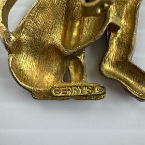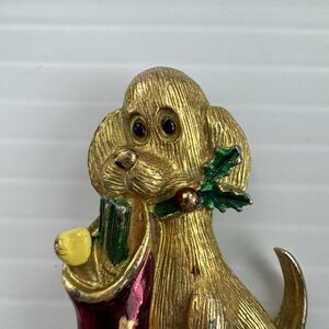 Vintage Gerry’s Christmas Dog with Stocking Brooch Pin Enamel Holiday Gold Tone