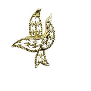 Vintage Gerry's Gold Tone Enamel Bird Dove Brooch Pin Pendant 2"