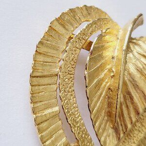 Vintage Gerry's Leaf Brooch Textured Brushed Gold Tone 3D Fall Autumn Timeless