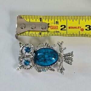 Vintage Gerry's Owl Brooch Women's Silver Faux Turquoise Cabochon Autumn Birding Fall 70s, 80s Birder