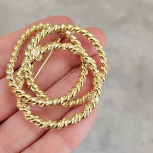 Vintage Gerry's Signed Gold Tone Brooch Braided Rope Design