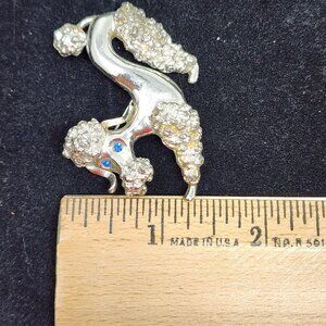 Vintage Gerrys Silver-Tone Poodle Brooch With Blue Rhinestone Eyes