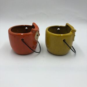 Vintage Gerson International Ceramic Owls Set of 2 with Handles Orange Yellow