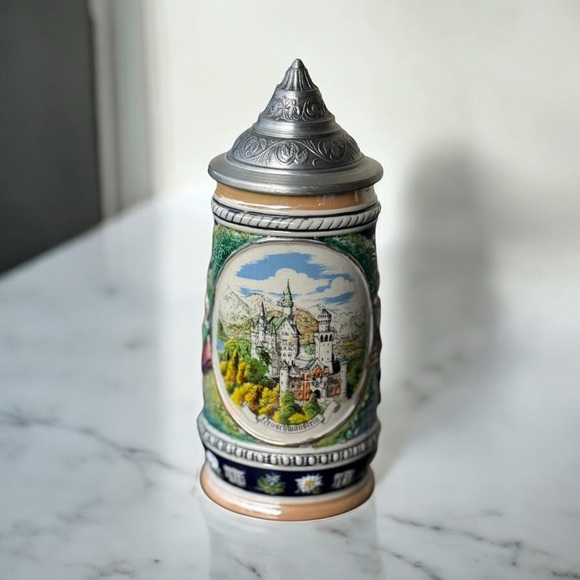 Keywords: Gerz stein, lidded stein, breweriana, beer stein, collectible stein, German stein, vintage stein, beer mug, decorative stein, traditional stein, pre-owned stein, beer culture, gift for beer lovers, collectible mug, authentic stein.