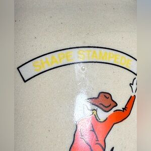 Vintage Gerz West Germany Ceramic stein featuring a colorful rodeo rider graphic Shape Stampede May 22-23 1982 Cream background with red, yellow and brown details. Bold artwork is eye-catching. Commemorative item Great collectible display piece.