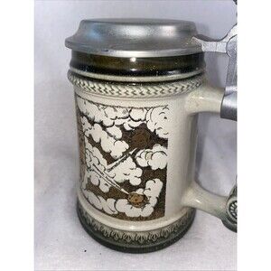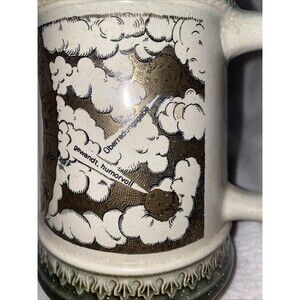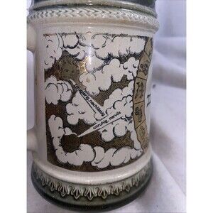 super rare unique and fun mug!!! zodiac signs in gold tones. Vintage original getzit gemz beer stein mug cup with a ceramic heavy duty mug and metal lid. old folk vibe