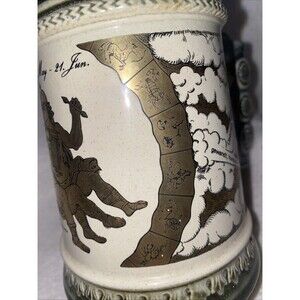 Vintage Gerzit Gerz Beer Stein Mug Lid W Germany Zodiac Cherub Gold Ceramic