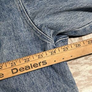 Classic 90s denim chore jacket Get Used by Elie from their Denim Revolution line. Made from 100% cotton with a medium blue wash and a broken-in, worn look. This one has all the vintage workwear vibes boxy fit, durable fabric, and plenty of style.