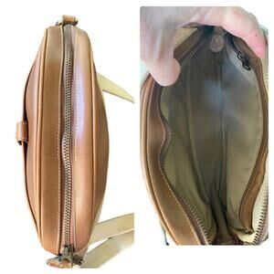 Classic, light weight, yet roomy, our vintage cross body No. 76 is earlier design of Purser bag. Production for this design was stopped in 1991 and later the style was changed to a larger messenger bag, introduced in 1993. Made of our khaki twill and tan saddle leather, this is a must have Crossbody bag for any Ghurka fan. Bag is in great condition, there is some slight staining of canvas from leather.