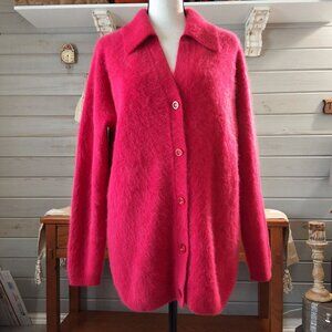 Vintage GiGi Womens Red Mohair Button Down Cardigan Sweater XL Cozycore