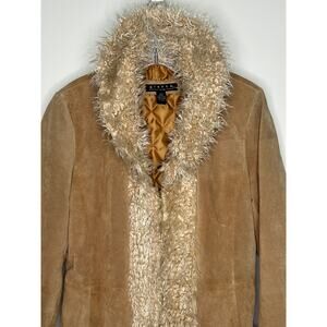 Vintage Giacca Genuine Suede Faux Shearling Penny Lane Coat brown Tan Large
