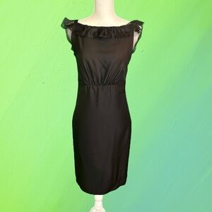 Vintage Giambattista Valli Black 100% Textured Silk Ruffled Neckline Midi Dress