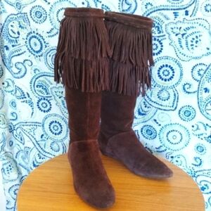 Vintage Size 9 Gianni Bini Dark Brown Sueded Leather Fringe Boots "Achilles"