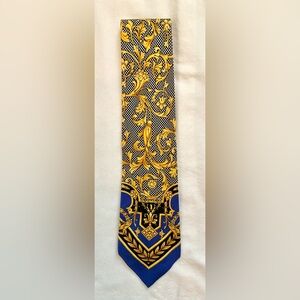 Vintage Gianni Versace Iconic Baroque Pattern Silk Tie Blue Gold Black