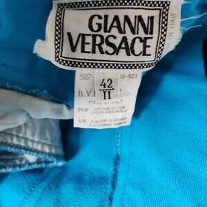 Vintage Gianni Versace Turquoise High Rise Cotton Jean Shorts IT 42 / US 6