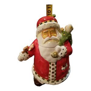 Vintage Gibson 2003 by Designer Debi Hron Santa and Friends Cookie Jar Christmas Holiday Decor Red Green Black White Birds