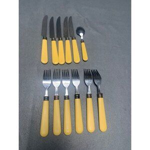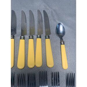 Vintage Gibson Yellow Handle Silverware Set 12-Piece Stainless Steel Flatware