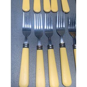 Knives = 8.5 inches, Forks = 7 inches. Minor scratches on blades, typical for vintage pieces.