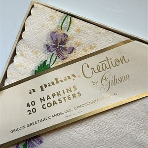 Vintage Gibson Violets 40 Paper Napkins & 20 Paper Coasters packaged boxed set
