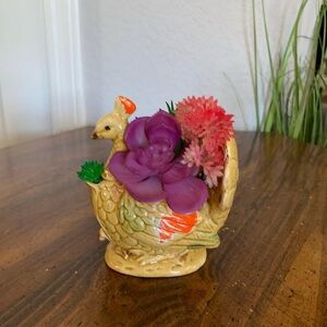 Vintage Gift Gallery Japan Peacock Planter with Faux Plants