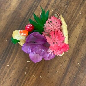 Charming ceramic bird planter with vibrant succulents. Features orange, green, and purple accents. 4.5”x4”.