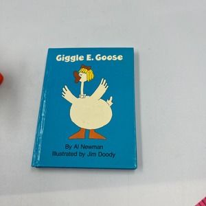 Vintage set of mini book and rubber goose, Giggle E. Goose by Al Newman illustrated by Jim Doody, copyright 1989. Book and rubber goose are in good condition as pictured.