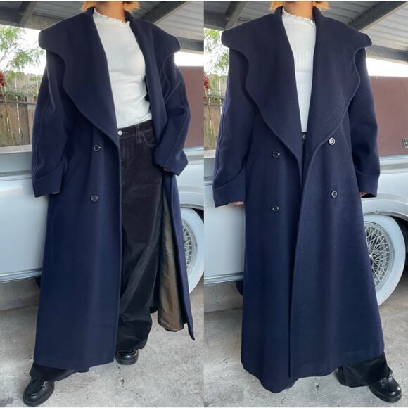 Vintage Gil Bret Wool Blend Shawl Collar Classic Double Breasted Long Overcoat