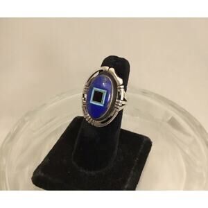 Vintage Gilbert Nelson Navajo Sterling Lapis/Turquoise/Onyx Inlay Ring Sz 5.5