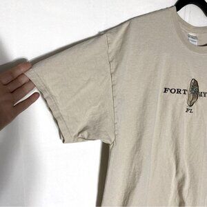 Vintage Gildan Beige Cotton Embroidered Fort Myers Florida T Shirt XL