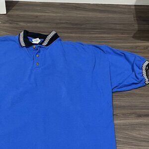 Vintage Gildan Blue Polo Shirt Black White Checkerboard Trim Size 2XL