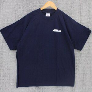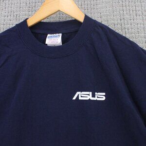 Vintage Gildan Shirt Mens XL Navy Blue Short Sleeve ASUS Tech Innovative Y2k