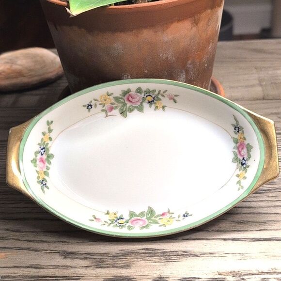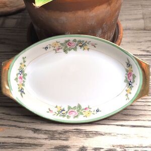 Vintage Gilded Hand Painted Floral Oval Relish Tray By Celebrate Made In Japan