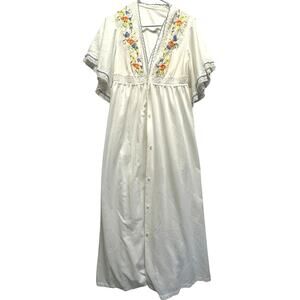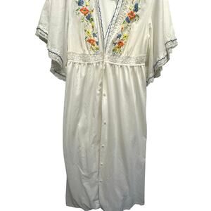 Vintage Gilead White Embroidered Nightgown & Robe Set Medium Cottagecore Lace