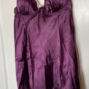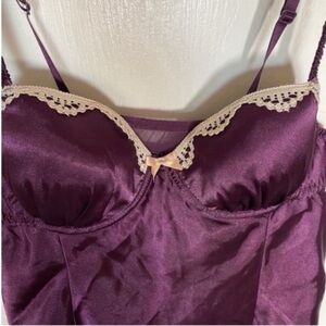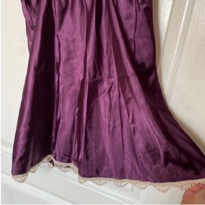 Vintage Gillian O’Malley Purple Nighty Satin Burgundy Tan Lace Slip Dress 90 Y2K
