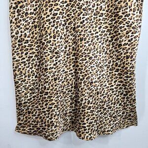 Vintage Gilligan O' Malley Black Brown Cheetah Silky Satin Slip Dress Lingerie