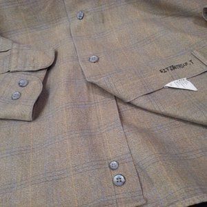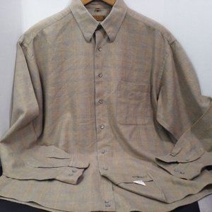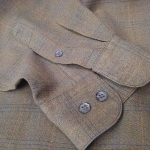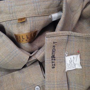 Vintage Gillio Premier LS Plaid Shirt Shell Button-Down Men-L Pocket Cotton Tan
