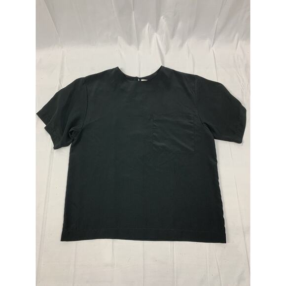 Vintage Ginger Meggs Women’s Short Sleeve Silky Top Chest Pocket Black M