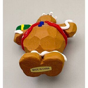 Vintage Gingerbread Man Christmas Tree Ornament Holding Gift Carved Clay Style