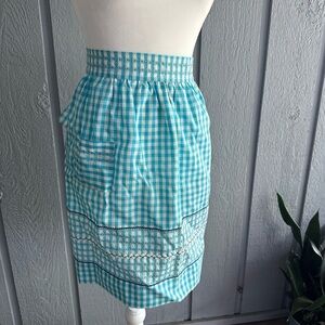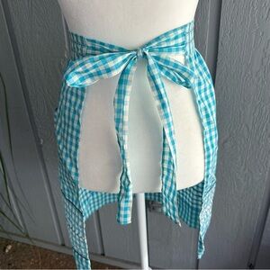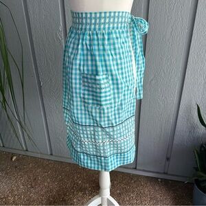 Vintage Gingham Blue White Half Apron Retro 50s Embroidery Border 2 Pockets