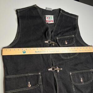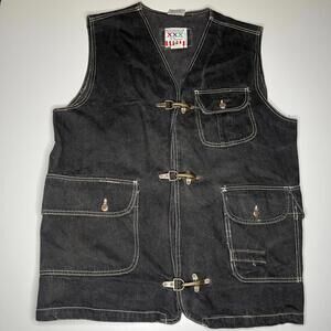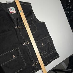 Vintage Gino Venucci Denim Work Vest Black L-XL Utility Western XXX Heavy Stitch
