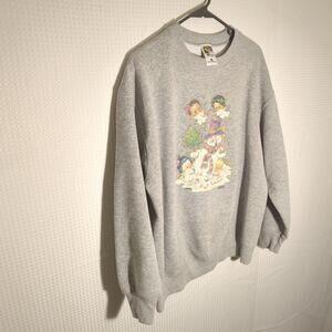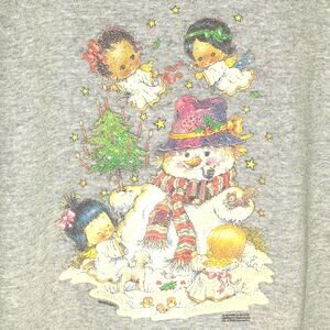 Vintage Giordano Art Christmas Sweatshirt Large Gray Snowman Holiday 90s USA