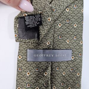 A distinguished collectible from the iconic Giorgio Armani Le Collezioni line, tailored in Italy. The suit features a classic houndstooth pattern in green tones, ideal for theater productions, film, or collectors of high-end menswear. Crafted from a luxurious blend of 57% viscose-rayon and 43% virgin wool, it offers a relaxed 1990s fit with softly structured shoulders, pleated trousers, and a timeless single-breasted jacket. Condition is fair to good, with some fabric discoloration and a small tear noted along a jacket seam (see photos). Overall integrity is maintained, making it suitable for costume use or professional repair.