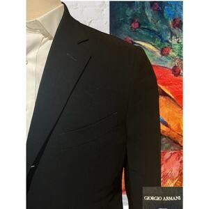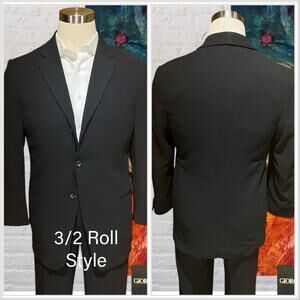 Vintage Giorgio Armani Mens 38R 30x29 Solid Black Italian Designer Suit 3/2 Roll
