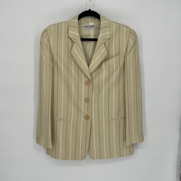 Vintage Giorgio Armani Pinstripe Blazer Butter Yellow Made In Italy 80s 90s W L