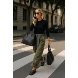 • Cashmere sweater + cargos