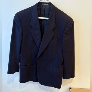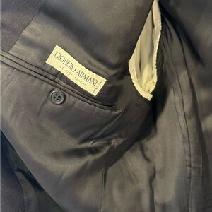 Vintage wool and cashmere blend Giorgio Armani suit coat. Beautifully handcrafted from Italy. It says it’s a 40R but I had my brother try it on and it was a little tight. He usually wears a 36R or 38R. Previously worn. Minimal wear and tear.