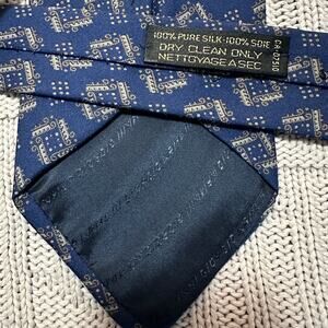 Vintage Giorgio Armani navy blue geometric silk tie. Previously loved and in excellent condition. Non smoking and pet free house.