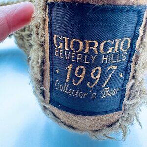 This adorable Vintage Giorgio Beverly Hills Plush Bear from 1997 is a collector's delight. Standing 12" tall, it features a charming plaid bowtie. A perfect nostalgic gift for bear enthusiasts. Preowned