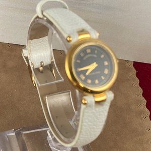 Vintage Giorgio of Beverly Hills Ca, Swiss Made Luxury Watch Original White 8 inch Vegan Leather Strap/Buckle Water Restraint to 100 Meters